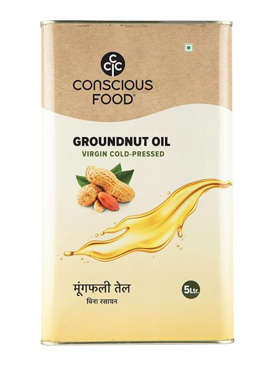 Perfect for health-conscious households, Conscious Food Groundnut Oil brings purity, tradition, and taste to your kitchen in a convenient 5-litre pack suitable for long-term use.